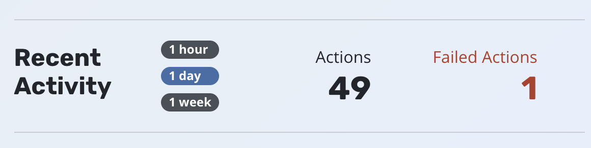 The recent activity section, uses Prometheus metrics across all clusters, and gives an aggregated view of recent actions. The actions can be viewed over a week, day or an hour.