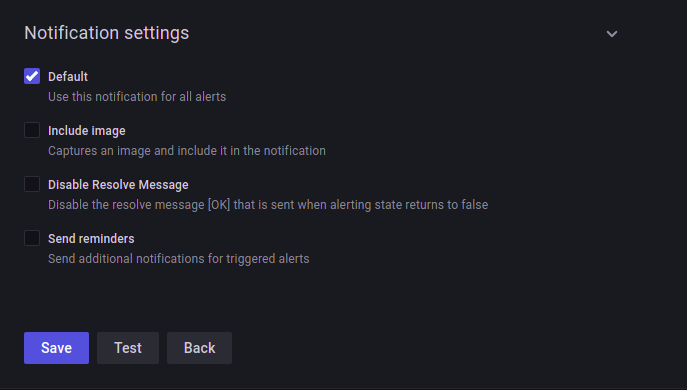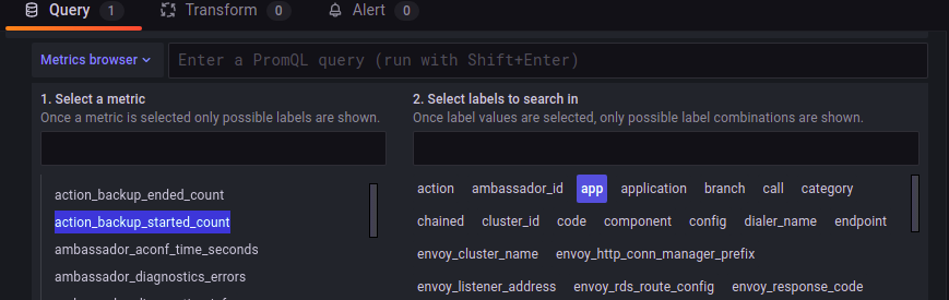 Grafana can be used to create alerts based on an alert rule. Each rule uses a query that fetches data from a data source. Each query involves a metric such as the K10 metrics described in a previous section.
