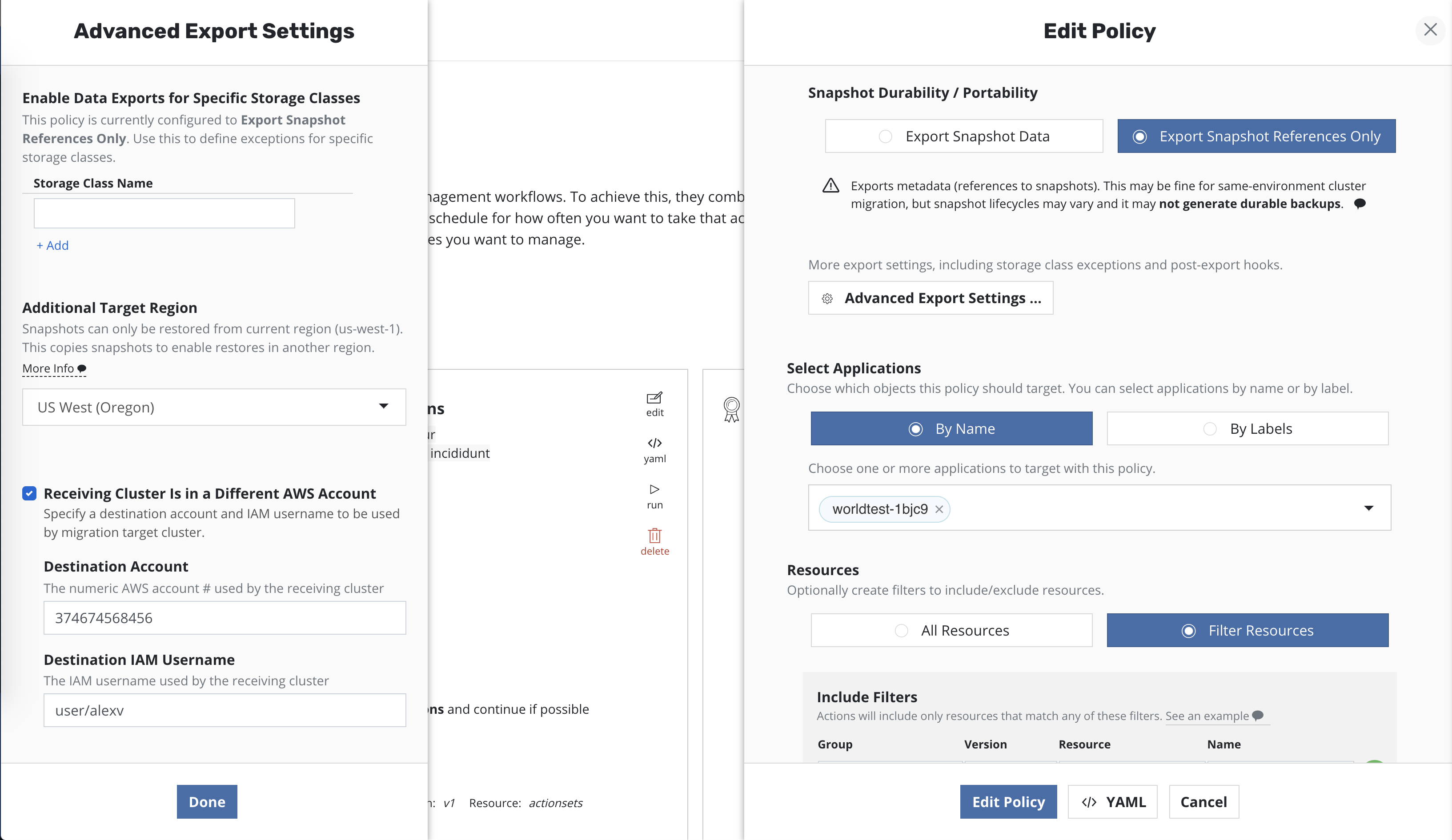 In an Azure environment, a destination region that is different from source can be specified in the export policy in the same way as mentioned for AWS above for a cross-region copy of the underlying snapshots.