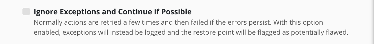 Any exception(s) ignored when creating a restore point are noted in the restore point: