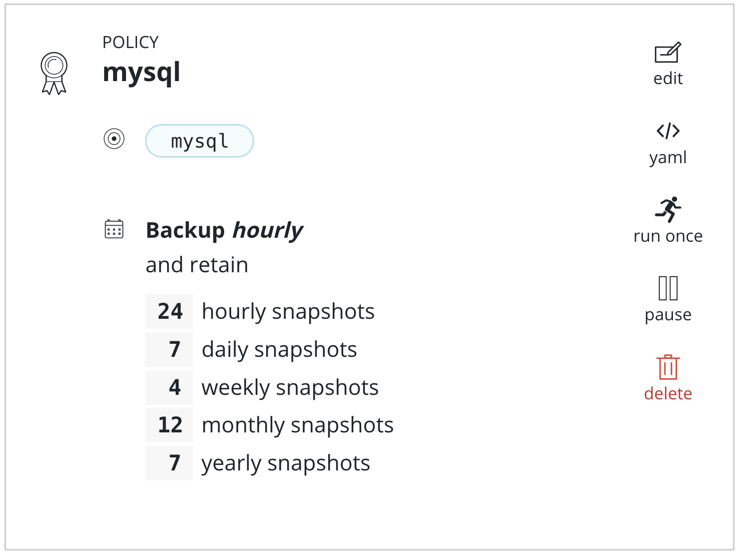 Retention schedule of snapshots and backups