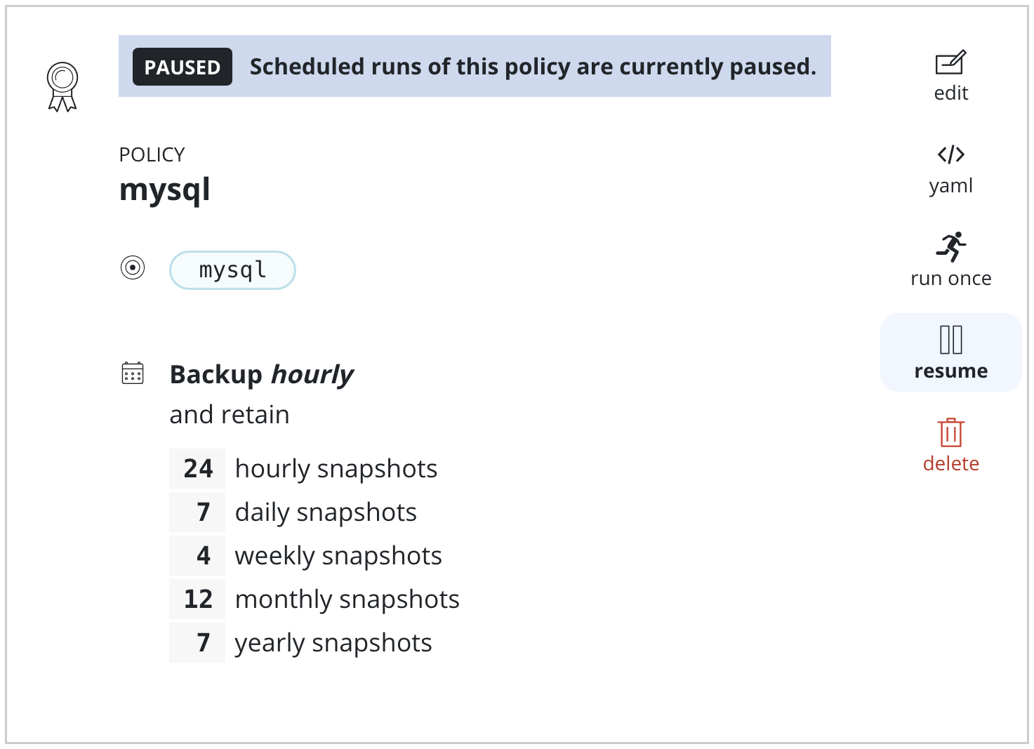 Once a policy is resumed by clicking the resume button, the next policy