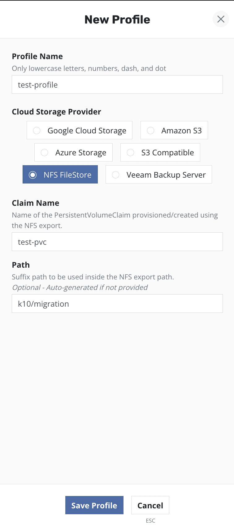 In case of NFS File Storage Location, the exported NFS share must be reachable from the destination cluster and mounted on all the nodes where K10 is installed.