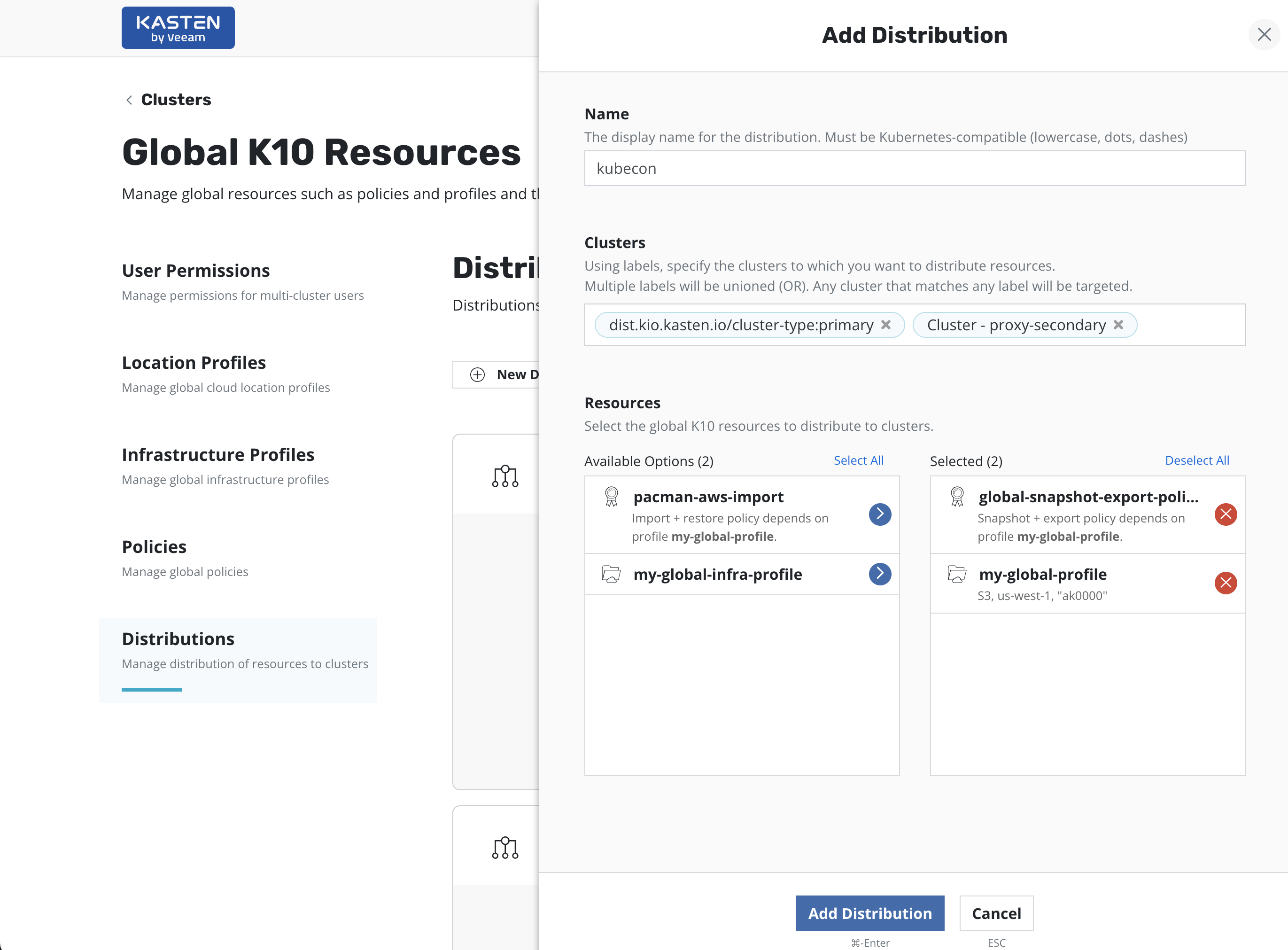 Resources managed centrally in the K10 Multi-Cluster Manager are also called Global Resources.