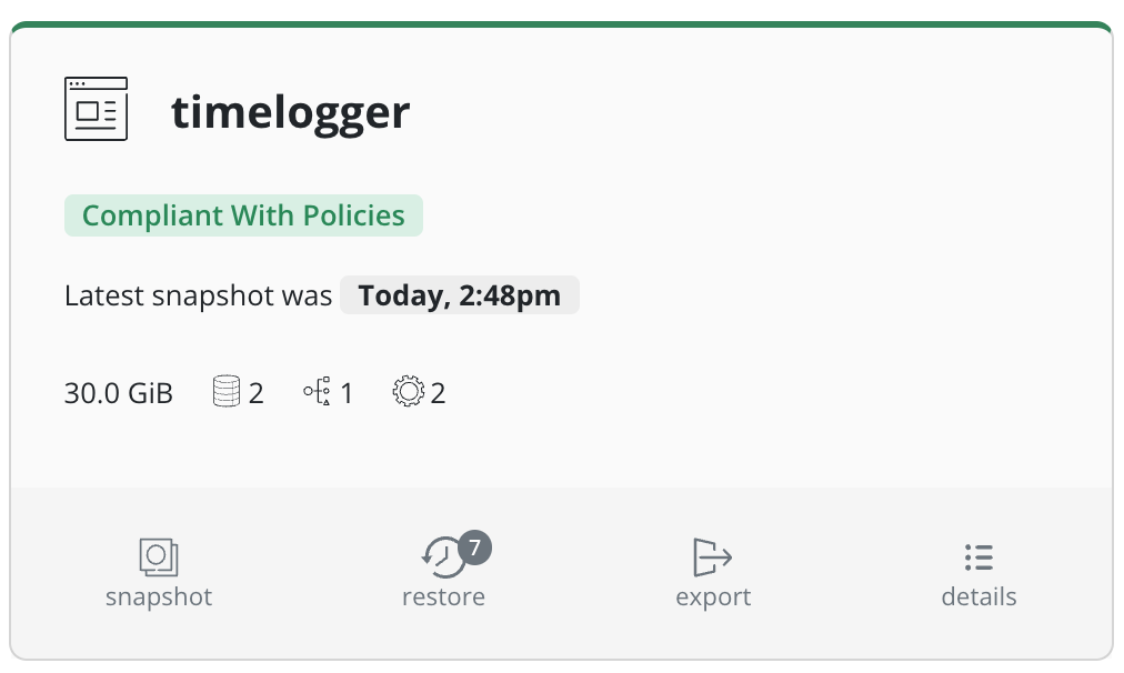 Apart from policies, it is also possible to manually create a one-off application snapshot or export. From the Applications page, simply click on the relevant icon.
