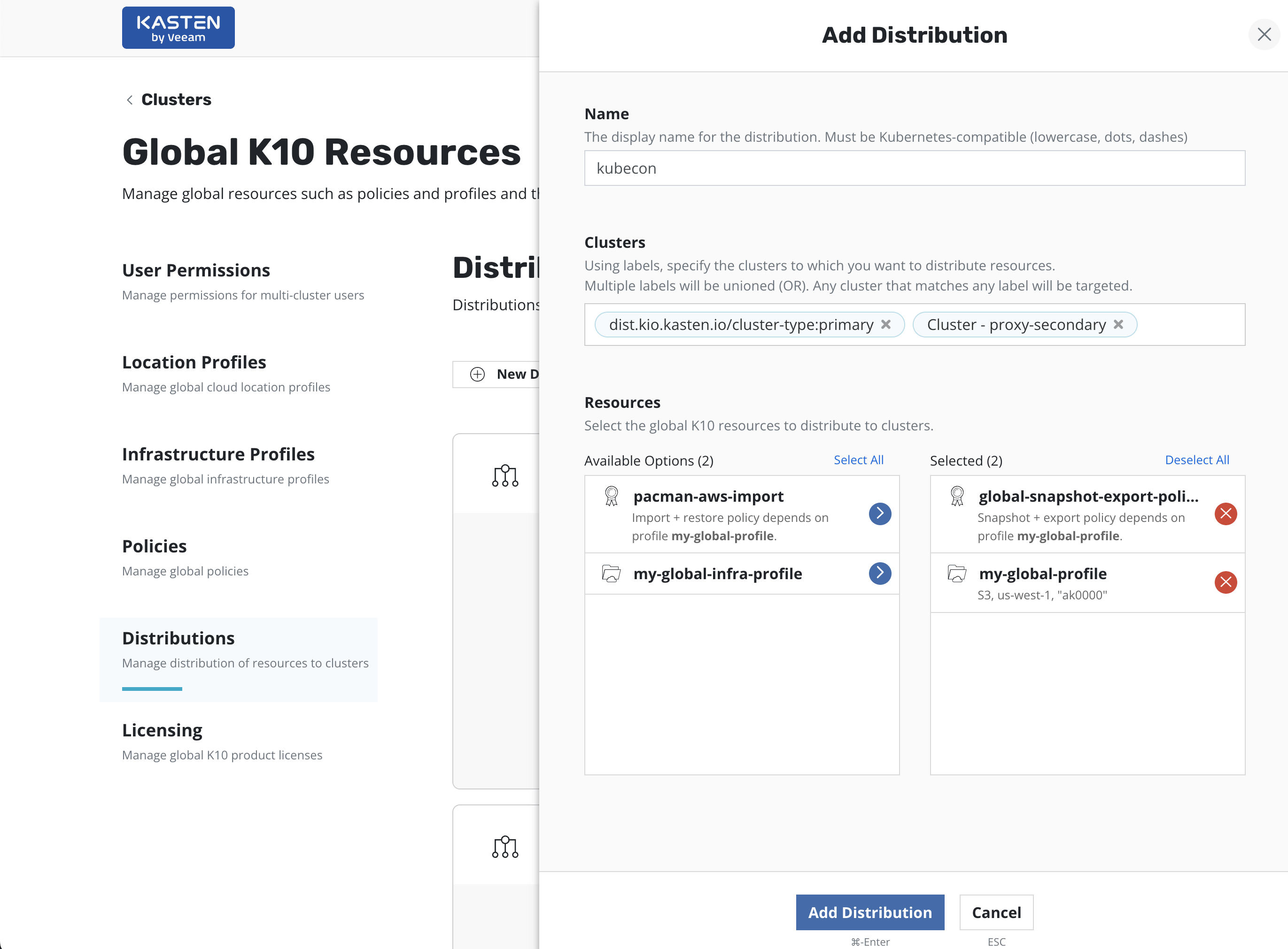 Resources managed centrally in the K10 Multi-Cluster Manager are also called Global Resources.