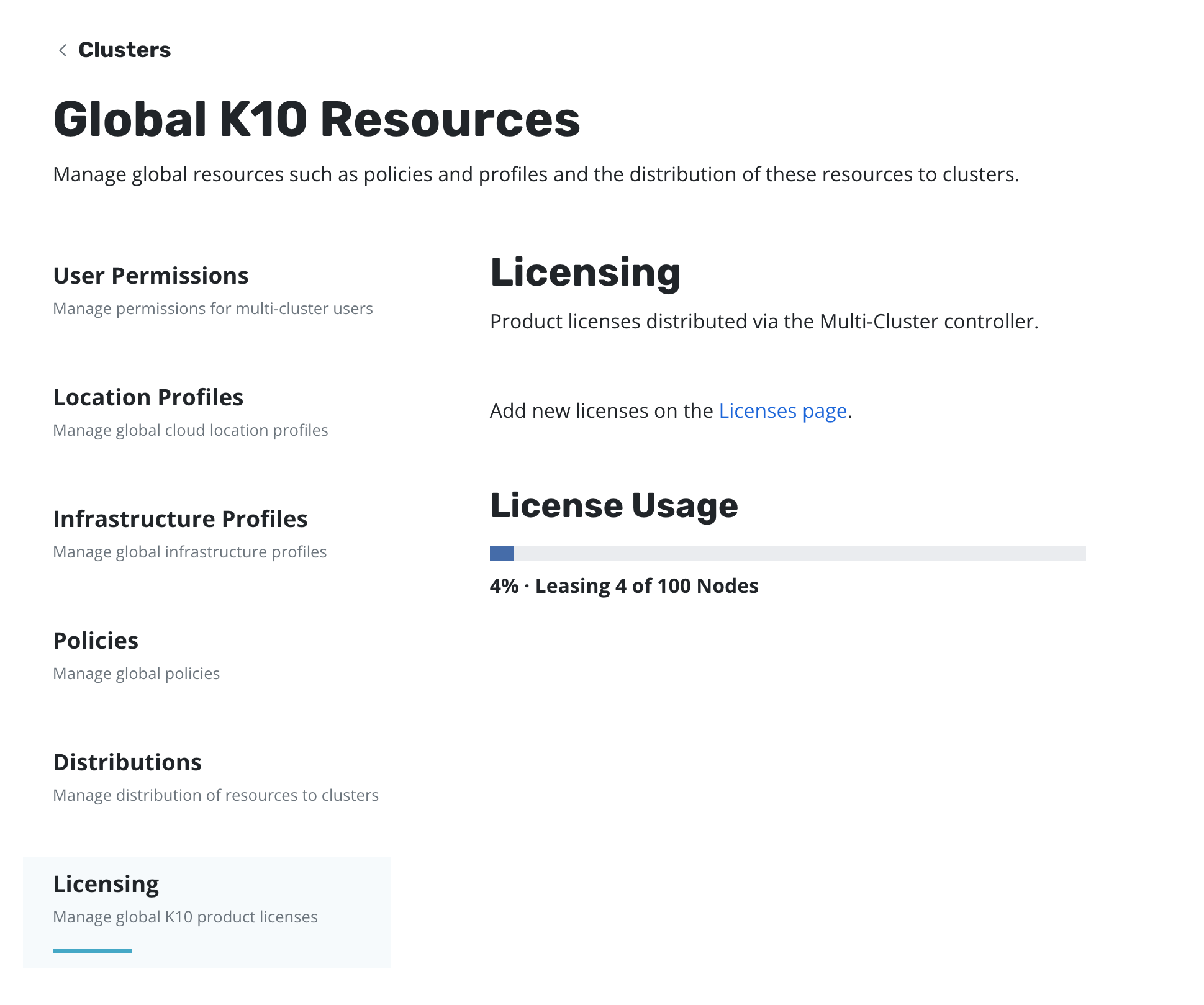 K10 multi-cluster dashboard's Global K10 Resources -> Licensing page