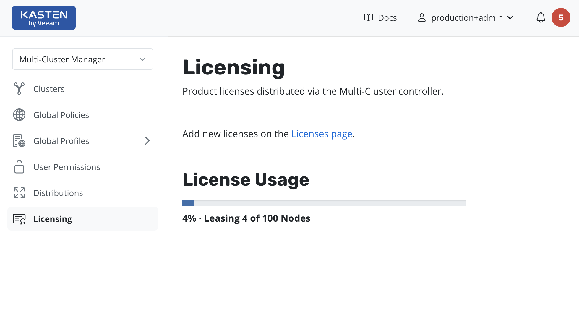 K10 Multi-cluster Manager's Licensing page