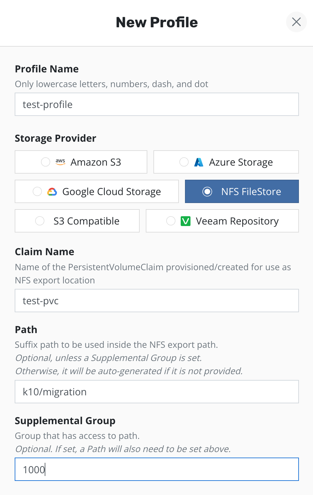 In case of NFS File Storage Location, the exported NFS share must be reachable from the destination cluster and mounted on all the nodes where K10 is installed.