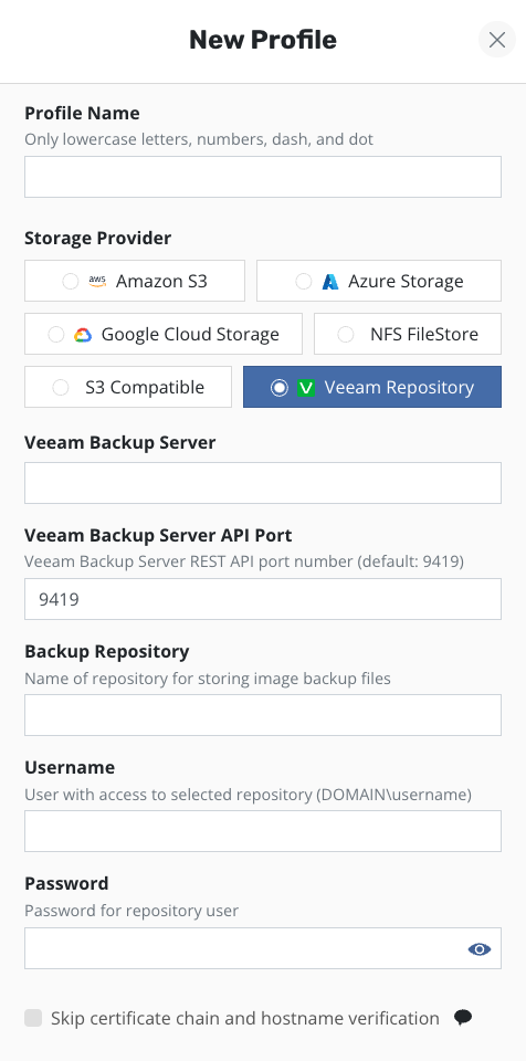 Please be aware that using more than one unique VBR host in location profiles is not supported and may cause synchronization issues between k10 and VBR. You can create as many location profiles as you need, but they should use the same server. If you try to save a host which is not used in other profiles you will get a warning, it's possible to proceed, but you should use this option only for temporary product reconfiguration cases.