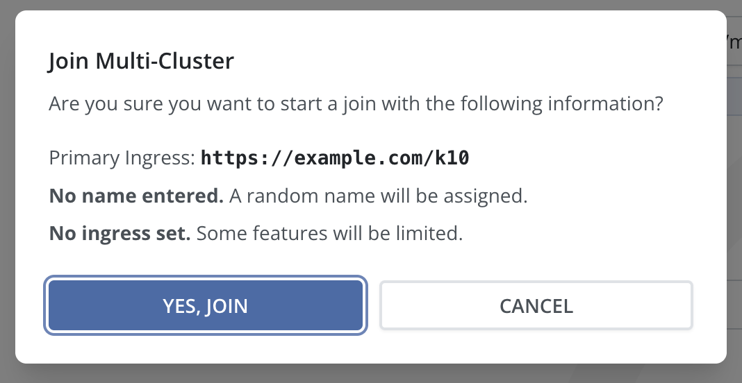 If K10 Multi-Cluster is disabled, creating the mc-join secret and mc-join-config ConfigMap will have no effect on the system.